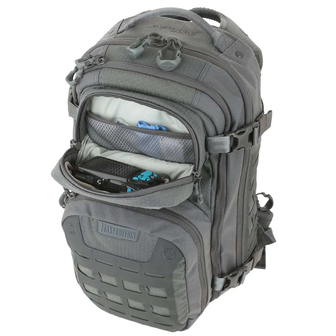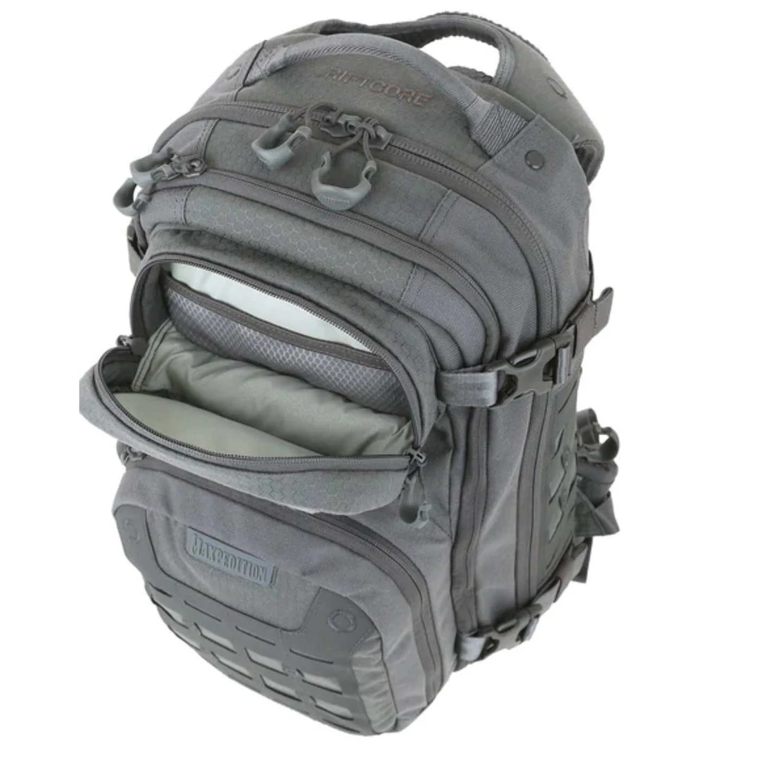 The Riftcore v2.0 Backpack is an ergonomic pack with quick release yoke-style straps. It is equipped with two locations for CCW placement, including a fully loop-lined rear compartment with two-way access. The middle compartment, which has a full clamshell opening, comes with multiple loop-lined adjustable straps that can be repositioned to make organizing and locating contents much easier.