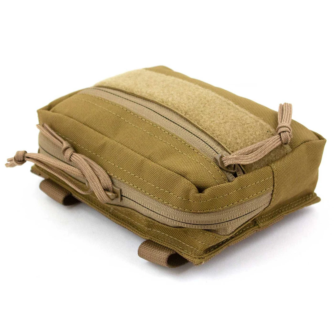 A compact horizontal MOLLE utility pouch ideal for mounting to any load bearing equipment or bag