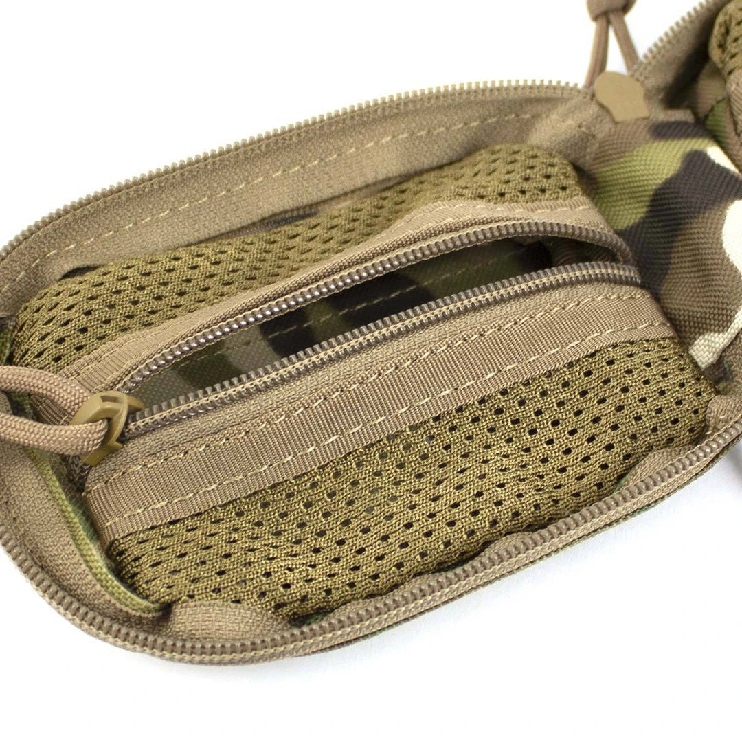 This compact little medic pouch (14 x 10 x 5 cm) is ideal for attaching to carriers, vests, chest rigs, rucksacks, bags or any other MOLLE compatible gear. Two mesh internal zippered pockets for organisation.