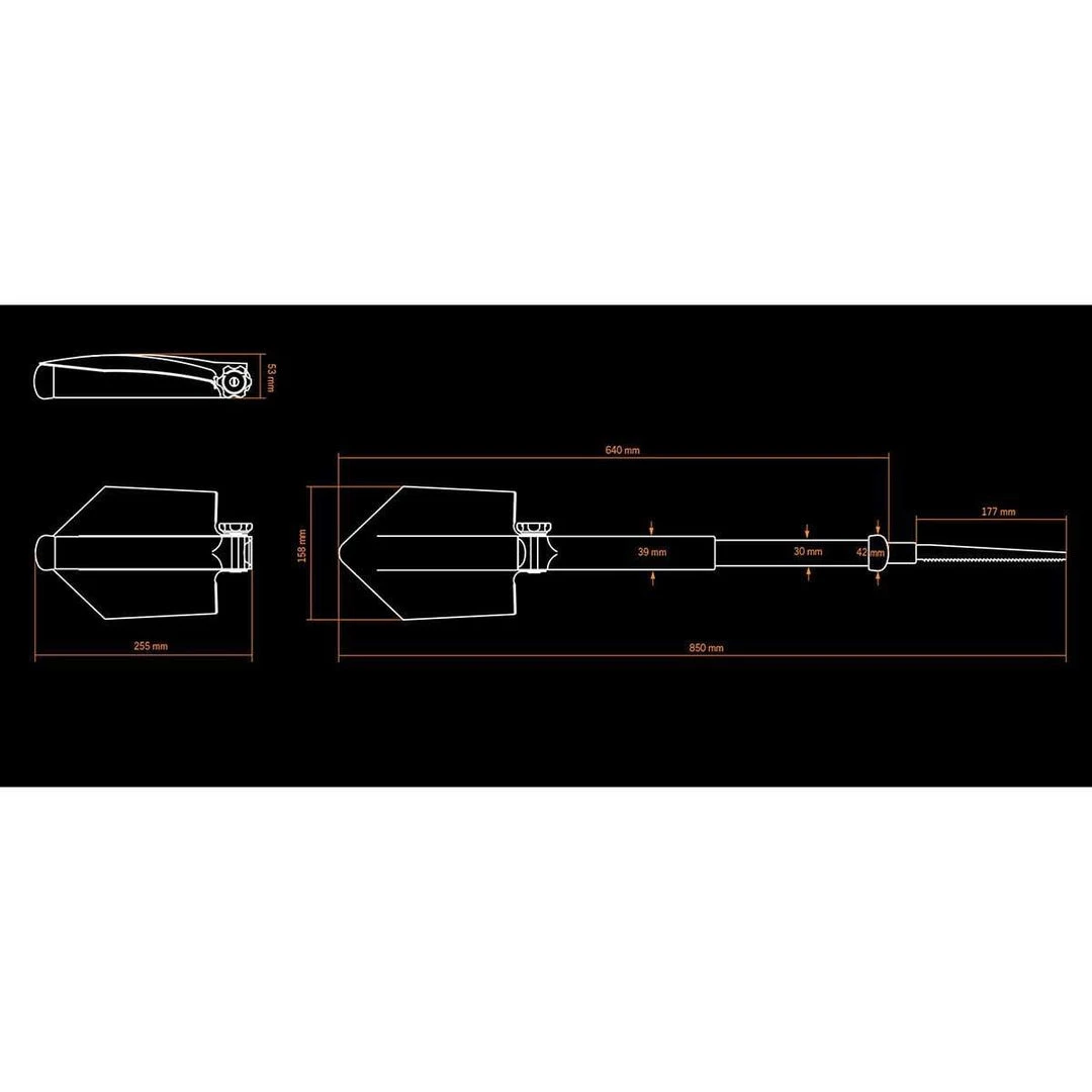 Three tools in one; Shade, shovel and saw. This multi-purpose field shovel is ideal for professional users such are military but also bushcraft, survival, camping or even gardening. The surface-treated spade blade of the GLOCK Entrenching tool has no welding or rivets and can be locked in three different positions turning it into a shovel or a spade. A hardened saw blade with a screwdriver tip is stored in the telescopic polymer handle and can be firmly attached to the handle. When folded up, the GLOCK Entrenching tool has extremely small outer dimensions and can be easily accommodated in a pouch or any field backpack or vehicle trunk.