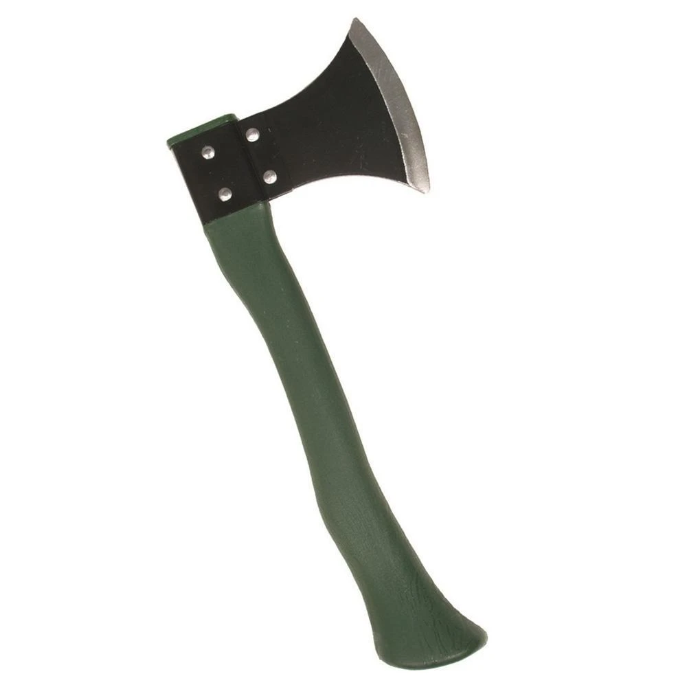 A versatile survival axe with a carbon steel axe head and a total length of 29 cm