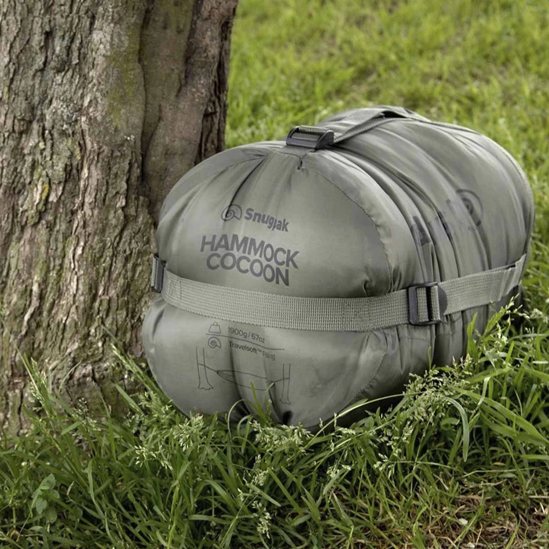 It is essential BEFORE you use the Hammock insulation system that you check the tension by lightly pressing down. THE HAMMOCK COCOON IS NOT DESIGNED TO BE LOAD BEARING. YOUR HAMMOCK SHOULD TAKE YOUR WEIGHT, NOT THE COCOON.