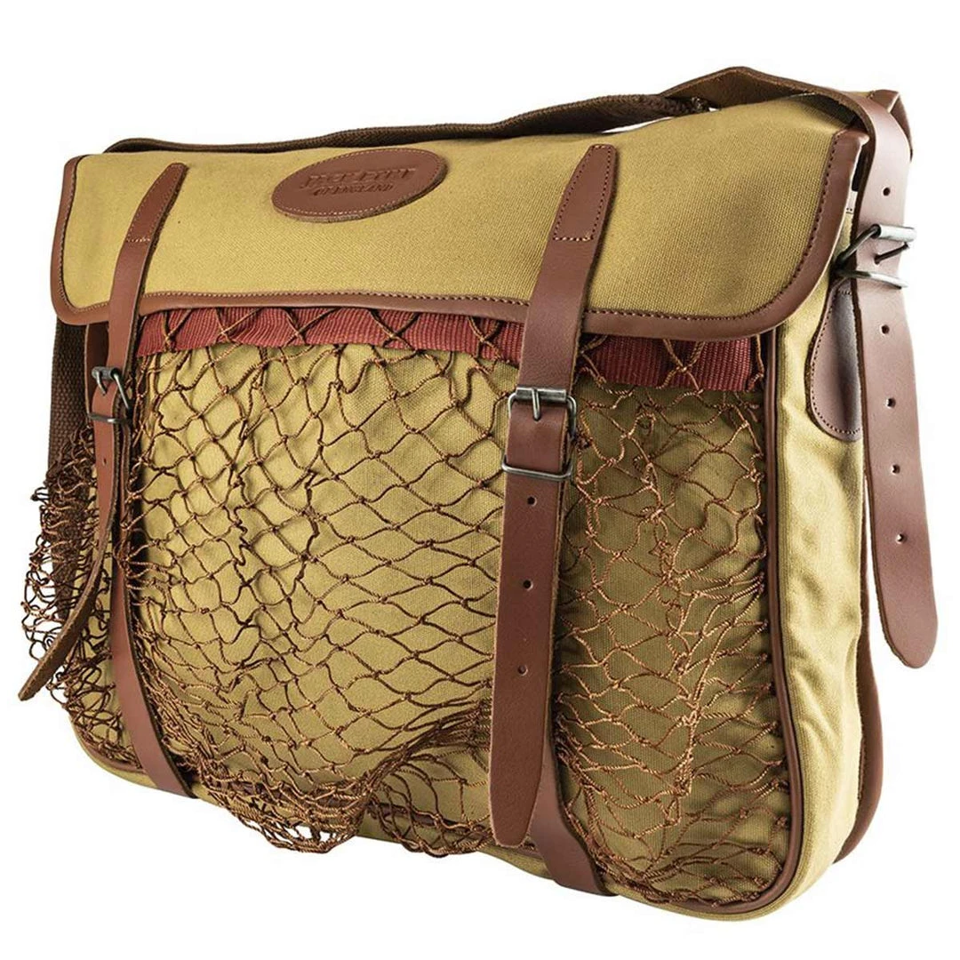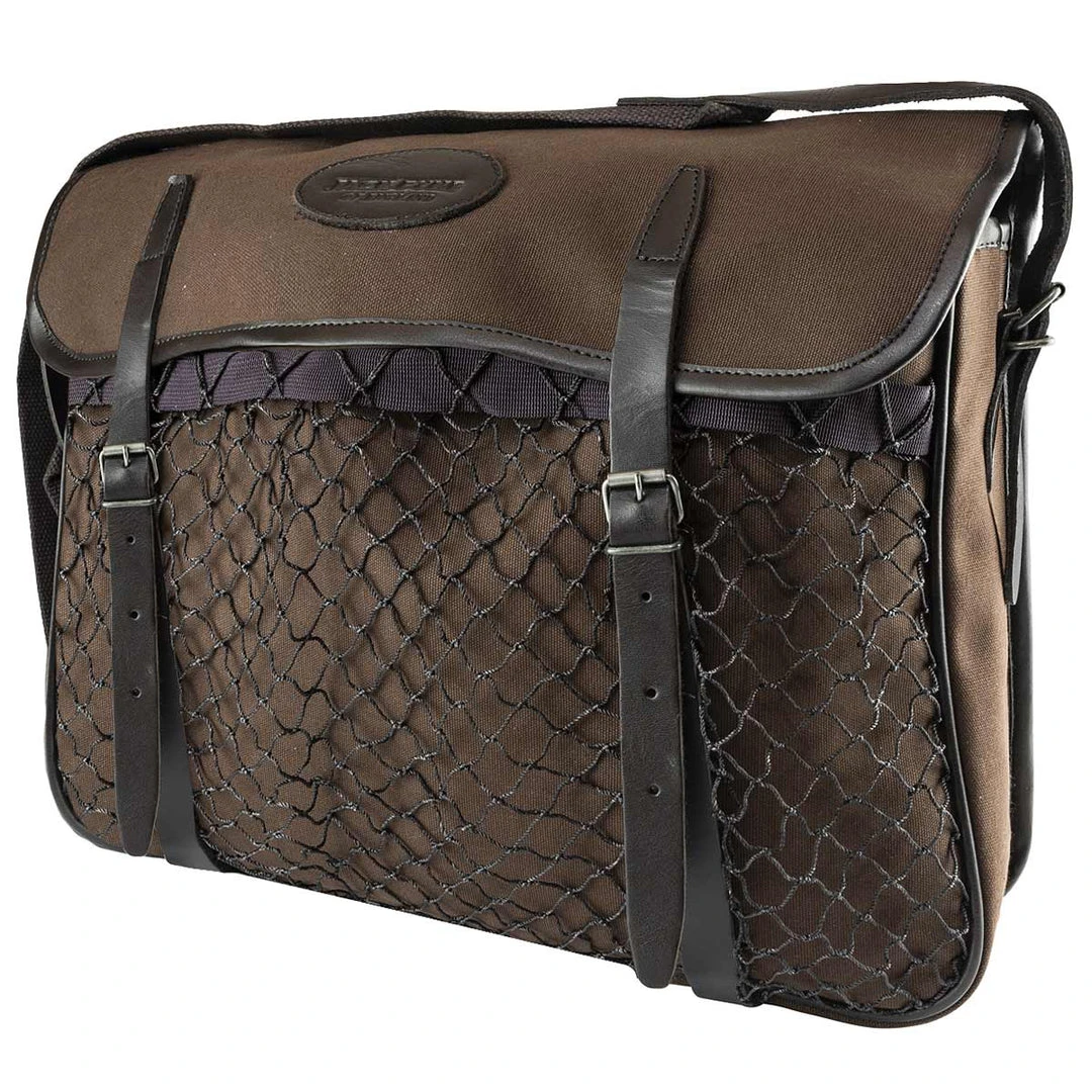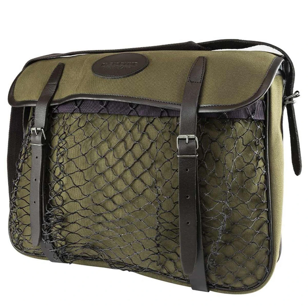 A traditional bag to carry game during a shoot. Fashioned from heavy duty cotton canvas and with the addition of faux leather trims and straps this, bag was designed not only to look good but also be practical. Inside we used a washable lining for an easy clean and for additional capacity we added a front nylon mesh pocket. The length of the shoulder strap can be adjusted using the attached metal buckles. This is an ideal bag for any outdoor pursuits.