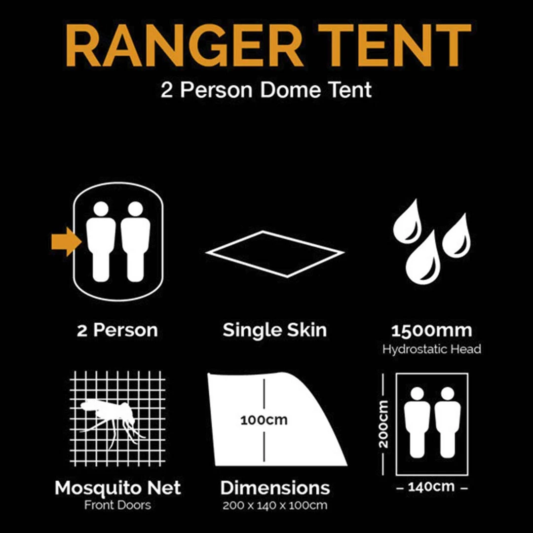 The Ranger Tent is a practical two person dome tent with a single skin which is ideal for expeditions and comfortable camping. It is incredibly light weight and most importantly packs down to a size that won’t slow you down. The ranger tent is a practical and tough companion for leisure, motor biking, cycling, outdoors, working, fishing, hunting and also many more activities.