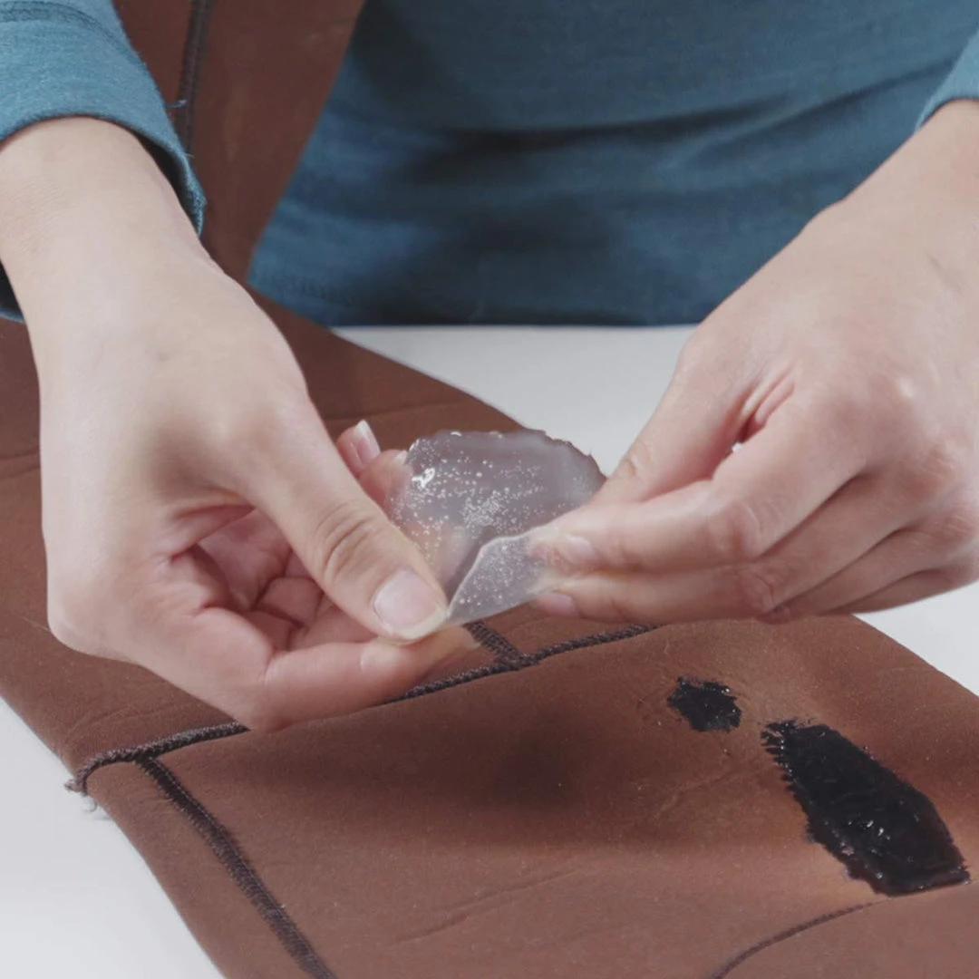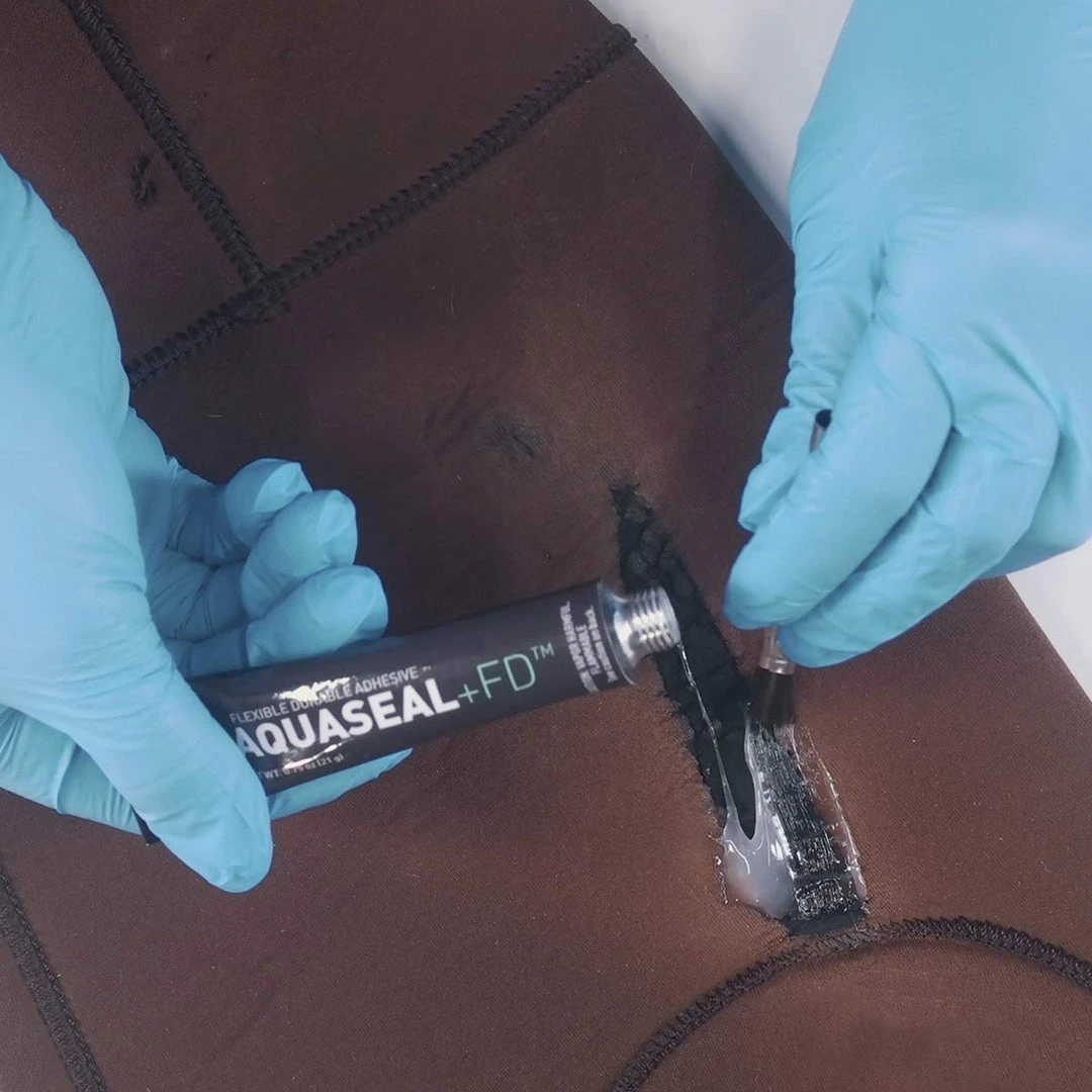 - For patch application on fabrics and breathable laminate, apply Aquasure, then apply the patch over the damaged area. Wipe away excess adhesive.