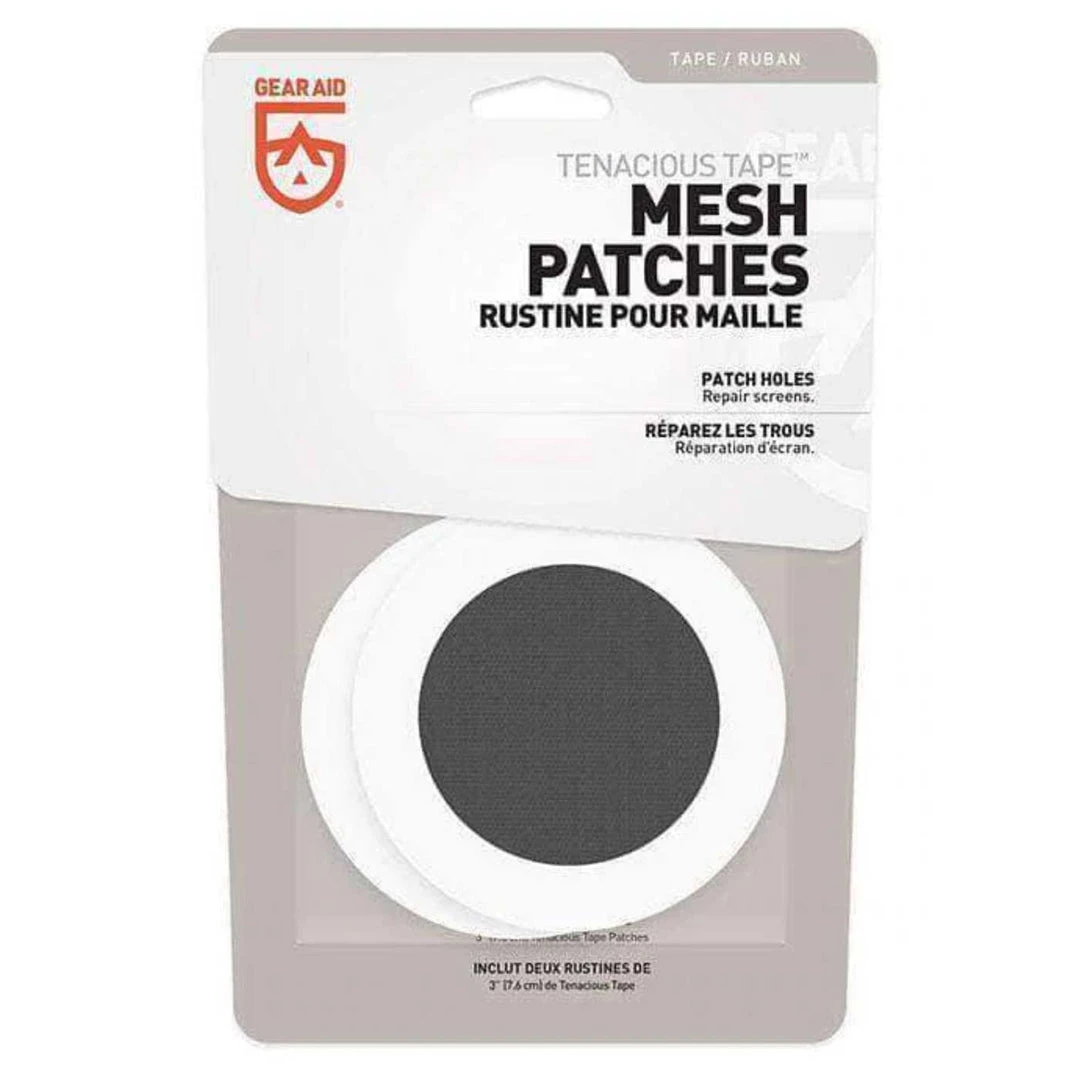 - Kit contains three transparent Tenaciousâ„¢ Tape adhesive repair rings and two mosquito mesh patches suitable to cover any small hole or tear up to 7 cm (2.76″).