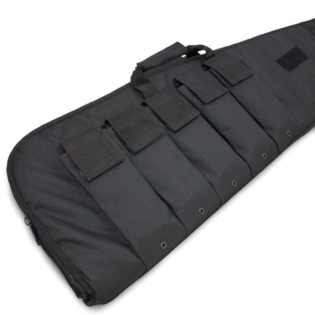 Mil-Tec Rifle Cases offer excellent value for money while still providing the quality required for repeated use. Made from lightweight, durable polyester with a padded foam inner lining to provide protection against light knocks, scratches or other damage. On the exterior, there are five pouches designed to hold metal or polymer mags; Can also be used to hold other similar sizes items such as a compact cleaning kit or even your phone. These cases are ideal for use on the shooting range, airsoft, paintball and more.