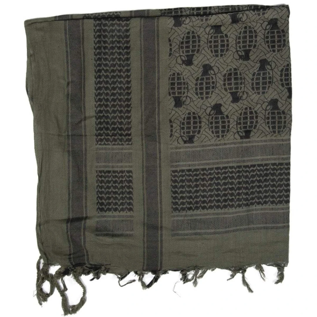 This shemagh scarf has been designed with a pineapple grenade insignia. This scarf of Arab origins and was originally intended to provide protection in desert conditions against sun, wind, sand & the cold at night. Used by Military the whole world over but also great for airsoft, hiking, festivals or any other outdoor use. First used by British Special Forces operating in Northern Africa during WW2 but now a mainstay with the British Army and many others worldwide. Highly versatile and with dimensions of 110 cm x 110 cm (43.3″ x 43.3″), it can be worn in many ways; Headwrap, face veil, scarf, shelter, sunshade, as a sling to carry your gear or even as a towel or flannel.