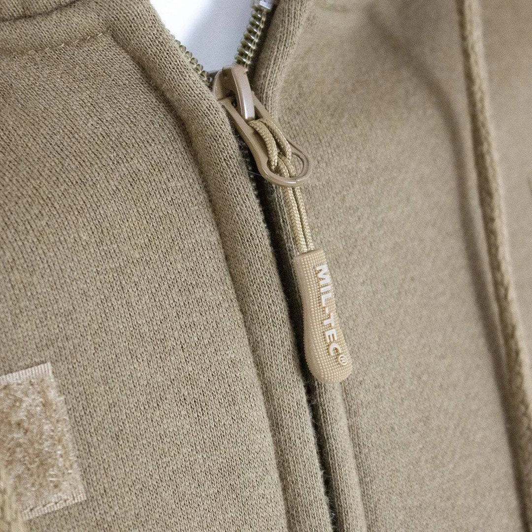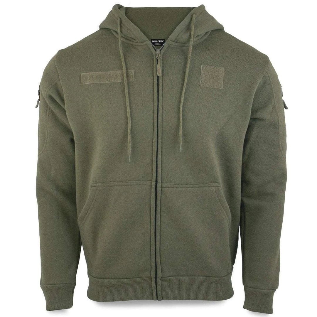 This Tactical Hoodie by Mil-Tec has been created for professional users in a sports style with a full front zipper. Hook & Loop panels on the front and both arms for the addition of ID patches make this hoodie an option for uniform use. The soft and warm internal lining means this hoodie will keep you comfy all day long. Cord routing outlet on upper arm pocket for phone, mp3 player or comms allows you to conceal any cables.